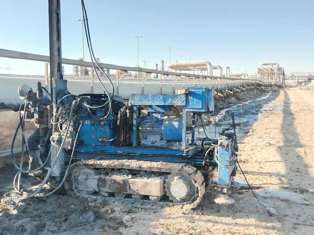 عملیات اجرایی توسط شرکت مهندسی فاراب پی در محدوده زیرخطوط لولههای پتروشیمی و همچنین در محلهایی که قرار است سازههای جدید احداث شوند، انجام شده است. با توجه به محدودیت فضا، وجود تأسیسات و حساسیت بالا نسبت به لرزش، استفاده از سیستم میکروپایل خودحفار R32 برای این طرح انتخاب شد. این نوع میکروپایل بهدلیل امکان حفاری و تزریق همزمان، سرعت اجرا و کنترل بهتری را فراهم میکند..
