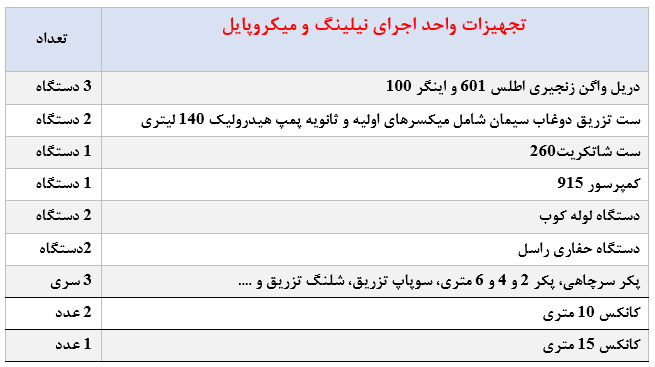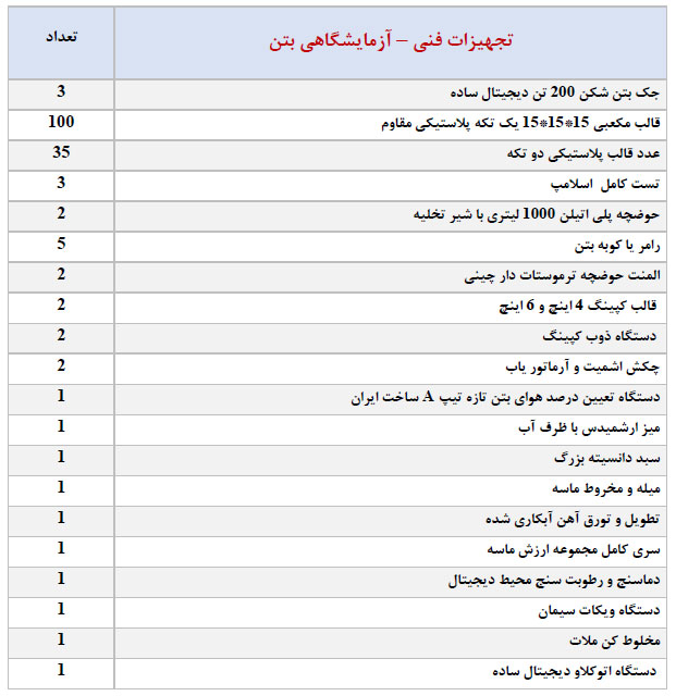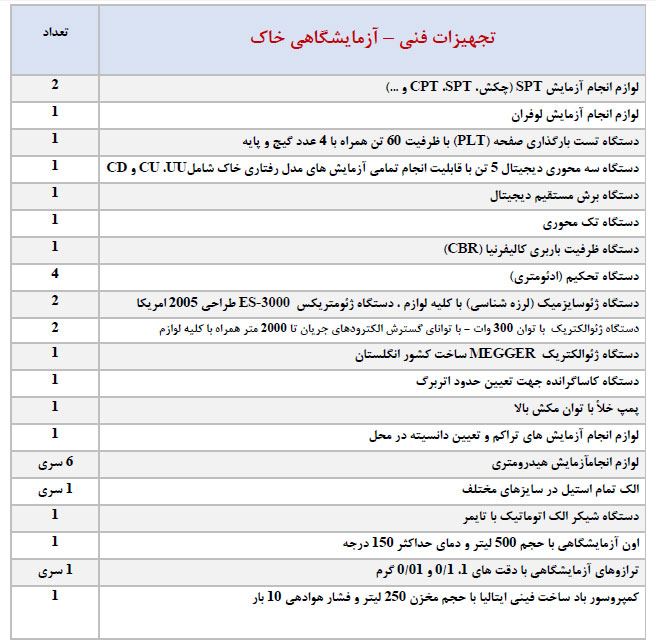 تجهیزات واحد بهسازی و نیلینگ و همچنین تجهیزات فنی آزمایشگاهی خاک و بتن شرکت مهندسی فاراب پی به شرح ذیل می باشد: